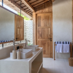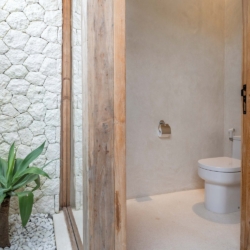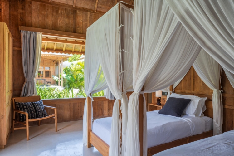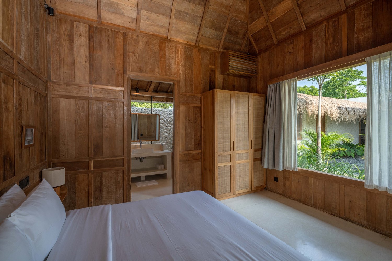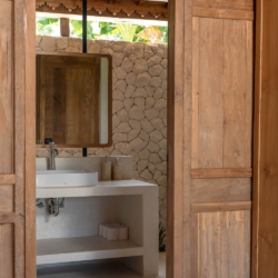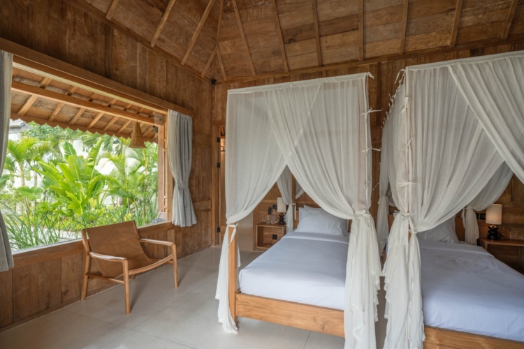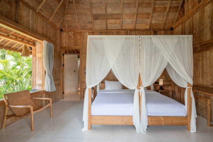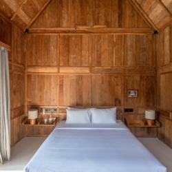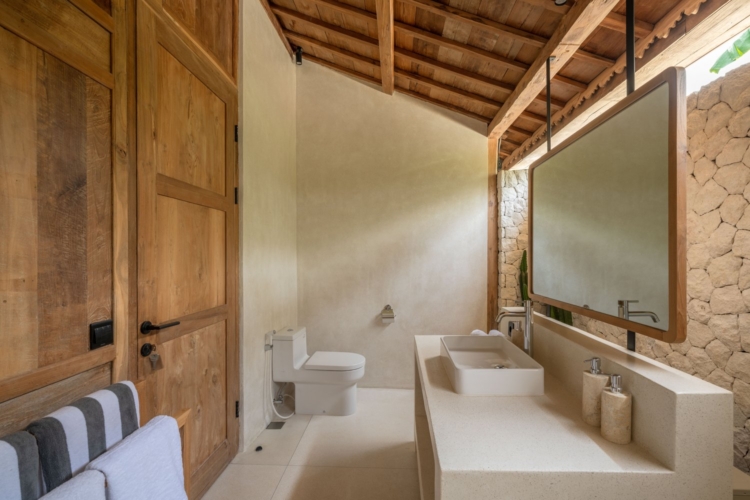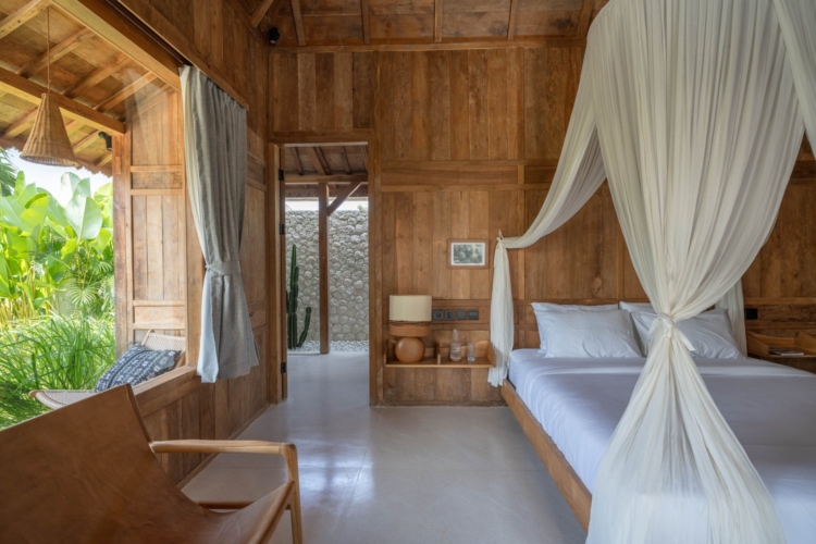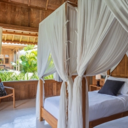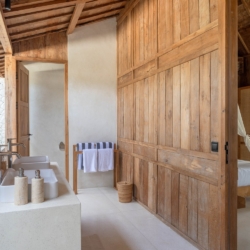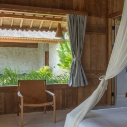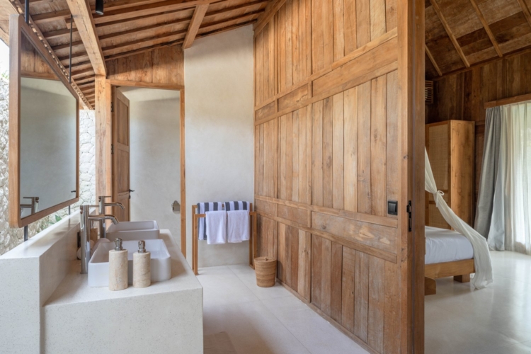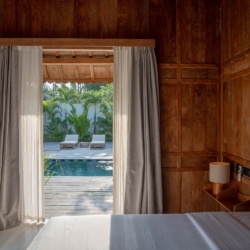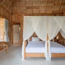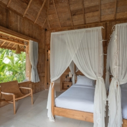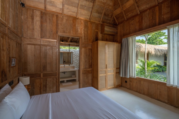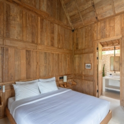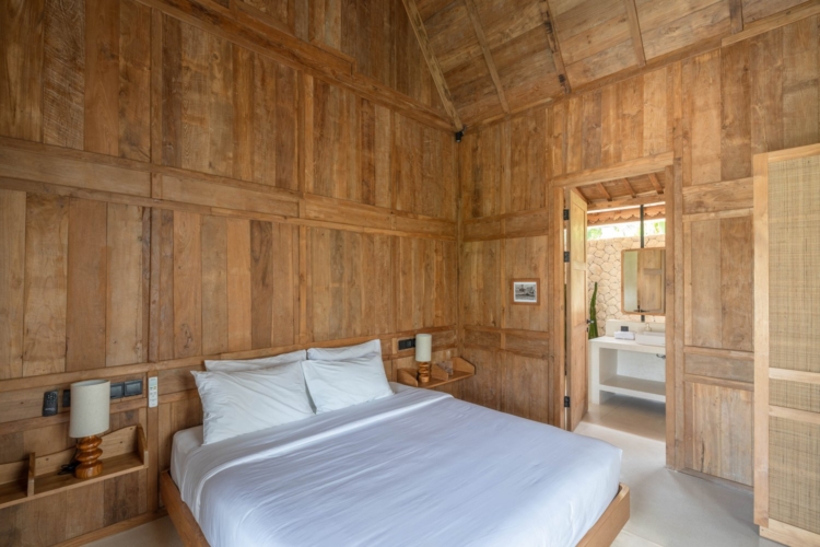 Each of the four bedrooms is designed for comfort and rest, featuring warm wooden interiors, en-suite bathrooms, and calming views of the pool or garden. Whether you’re reconnecting with loved ones, unwinding with friends, or simply enjoying the stillness, this villa provides an exceptional setting for a memorable island escape.