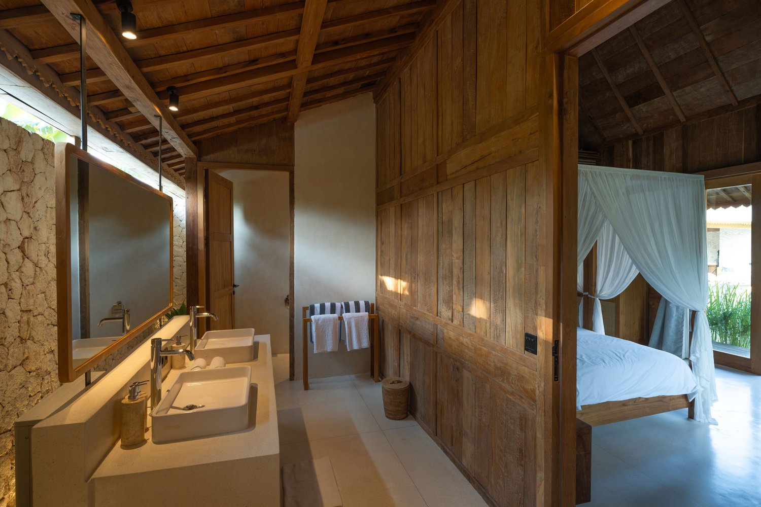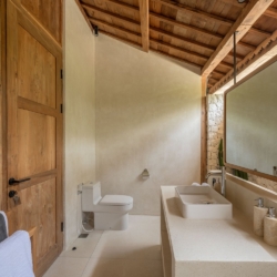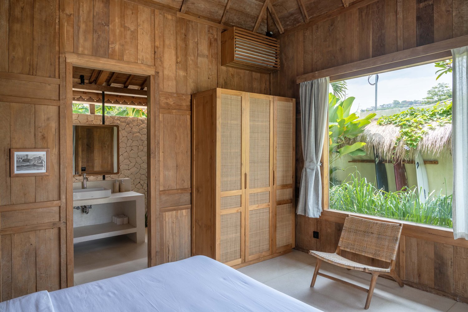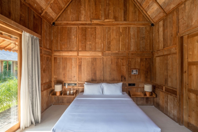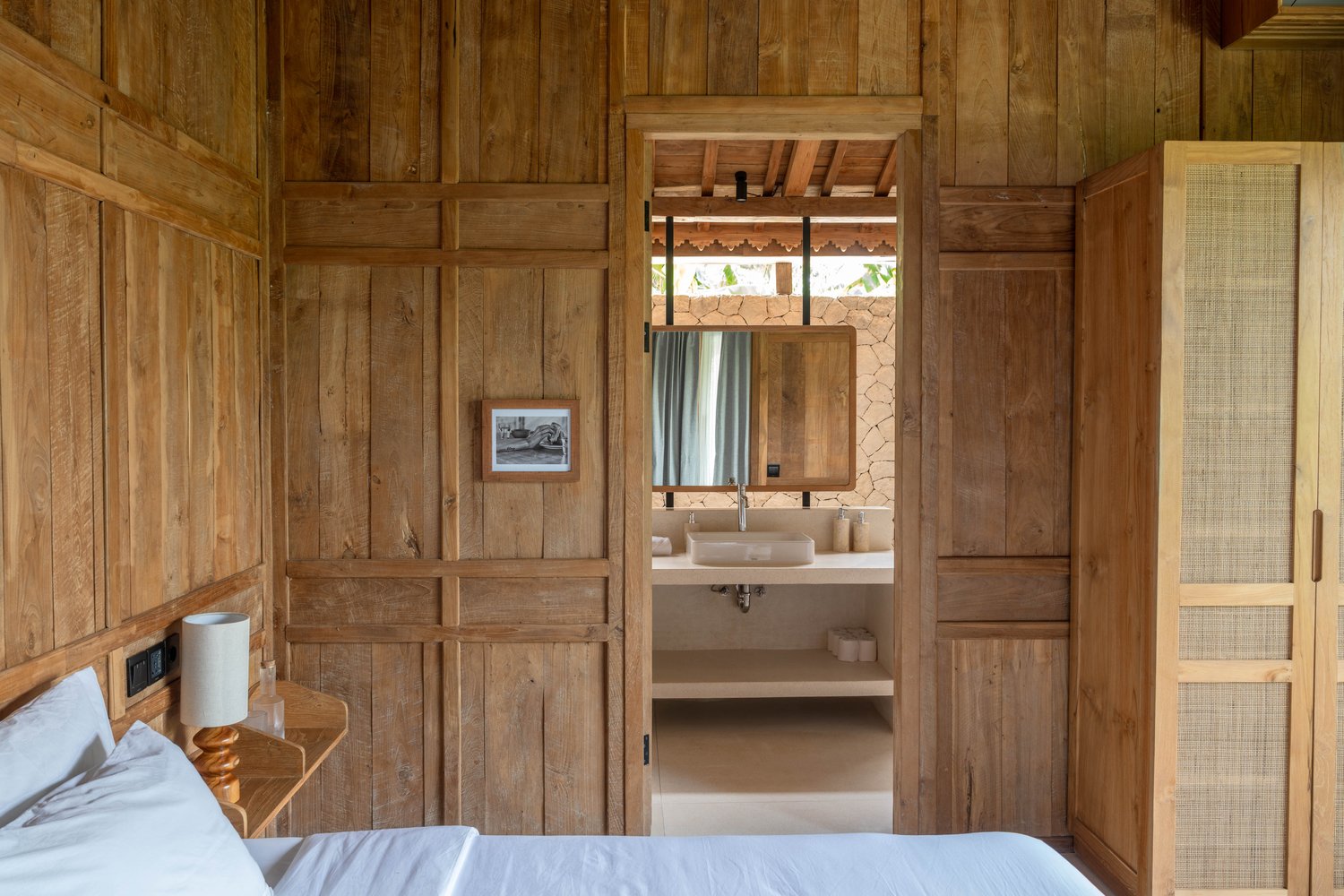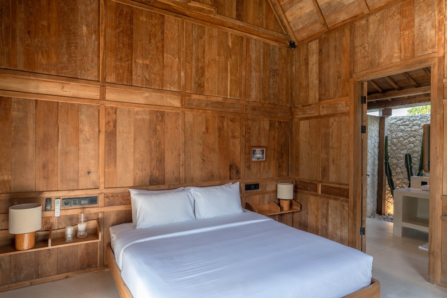 Each of the four bedrooms is designed for comfort and rest, featuring warm wooden interiors, en-suite bathrooms, and calming views of the pool or garden. Whether you’re reconnecting with loved ones, unwinding with friends, or simply enjoying the stillness, this villa provides an exceptional setting for a memorable island escape.
