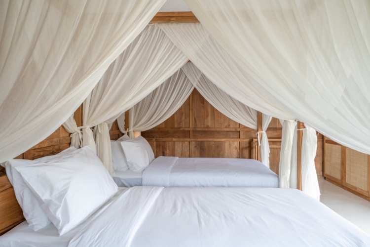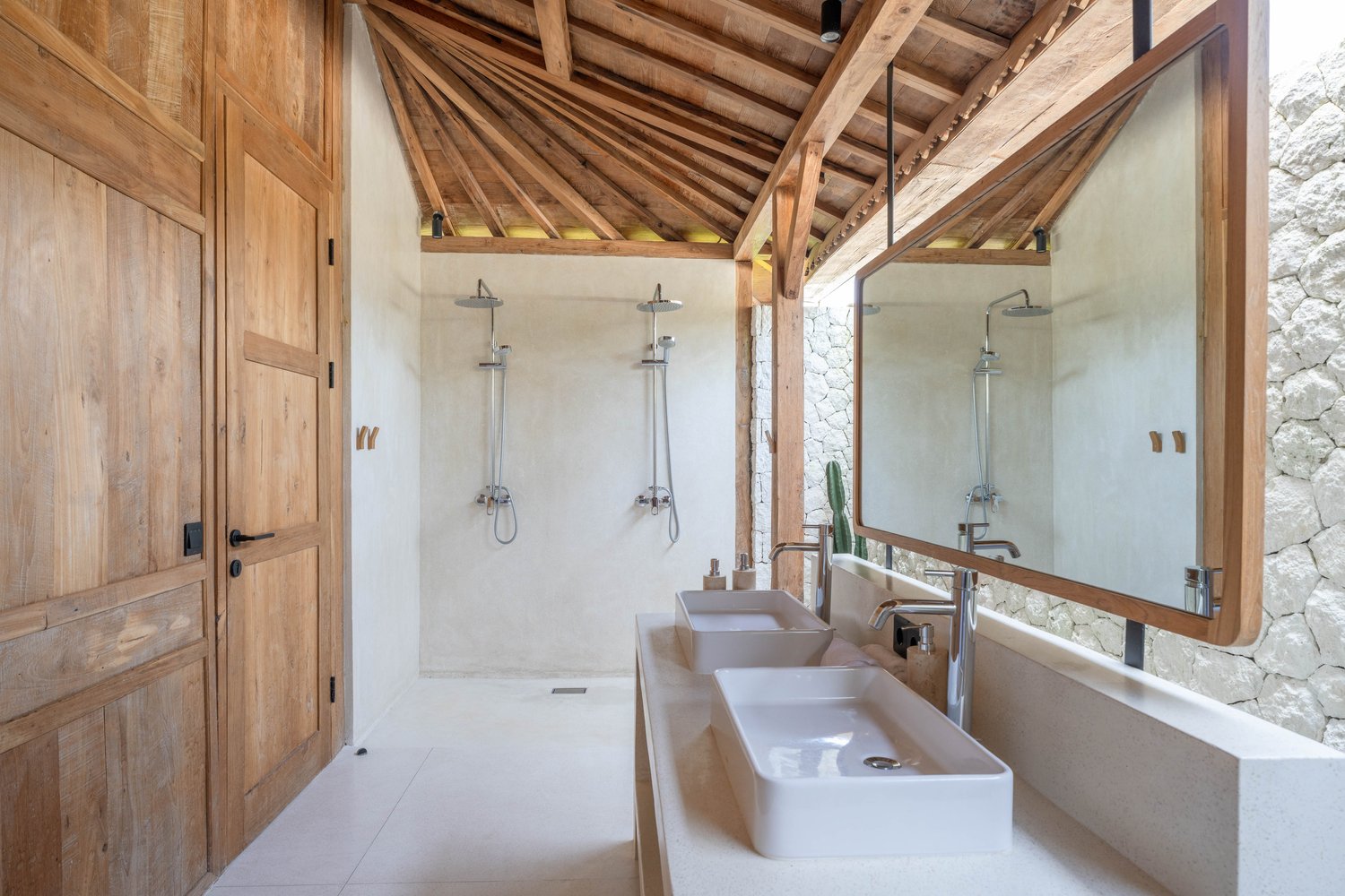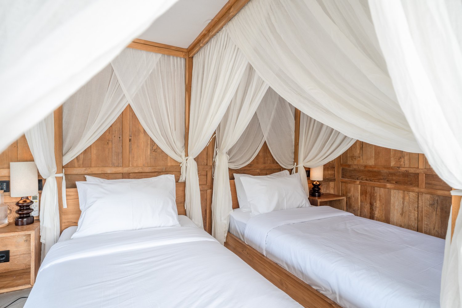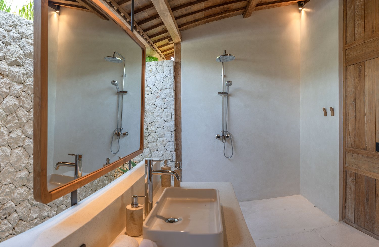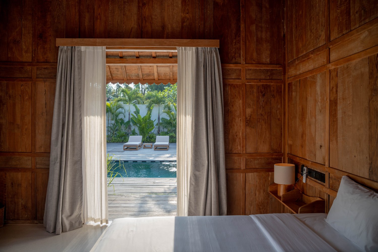 Each of the four bedrooms is designed for comfort and rest, featuring warm wooden interiors, en-suite bathrooms, and calming views of the pool or garden. Whether you’re reconnecting with loved ones, unwinding with friends, or simply enjoying the stillness, this villa provides an exceptional setting for a memorable island escape.