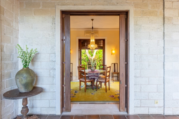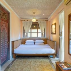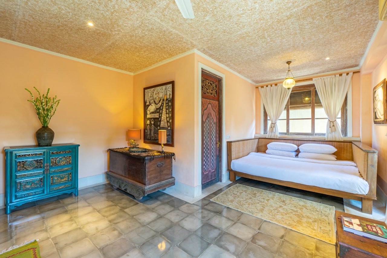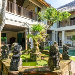 Set within the tranquil greenery of Sanur, Villa Angsa captures the elegance of traditional Balinese high-society living while offering the comfort of modern amenities and distinctive rustic design. This private gated compound welcomes guests through an ornate entrance, revealing a villa rich in character and timeless charm.