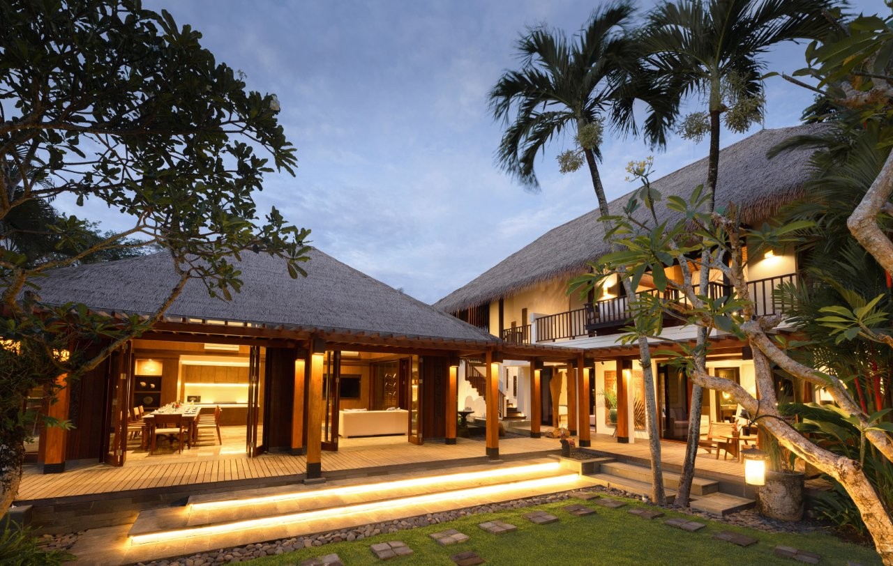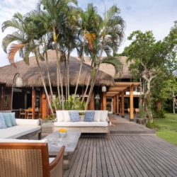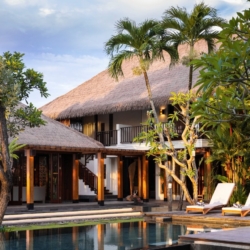 Villa Bangkuang is a luxurious multi-pavilion retreat set in the tranquil coastal village of Seseh, bordered by sweeping rice fields and just 300 meters from a dramatic volcanic black-sand beach. Blending classic Balinese architecture with contemporary elegance, this private five-bedroom estate offers expansive indoor and outdoor living, beautifully crafted alang-alang thatched pavilions, and lush tropical gardens throughout.