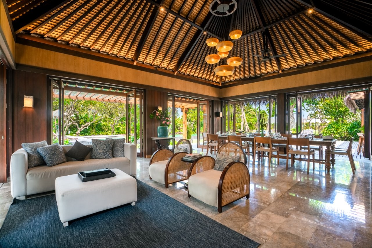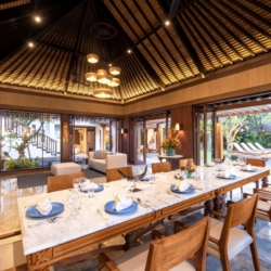 Perfect for family holidays, Villa Bangkuang is thoughtfully equipped for all ages, featuring a dedicated children’s room, a shallow pool ledge, babysitting services, and wide lawns ideal for play. Dining is effortlessly arranged with staff-coordinated restaurant deliveries or the option to engage a private chef for intimate dinners or special celebrations.