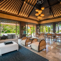 The villa also doubles as a breathtaking Bali wedding venue, hosting up to 100 guests amid picturesque gardens with rice-field backdrops. While peacefully secluded, it remains close to Canggu’s lively cafés and beach clubs, with nearby activities including yoga, horseback riding, temple visits, and excursions to Bali’s UNESCO-listed rice terraces such as Jatiluwih Rice Terraces.