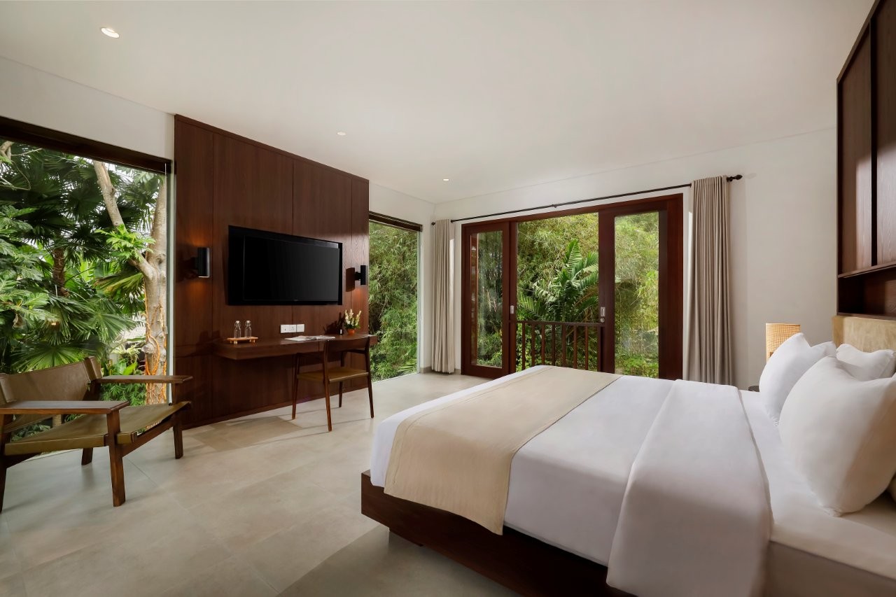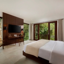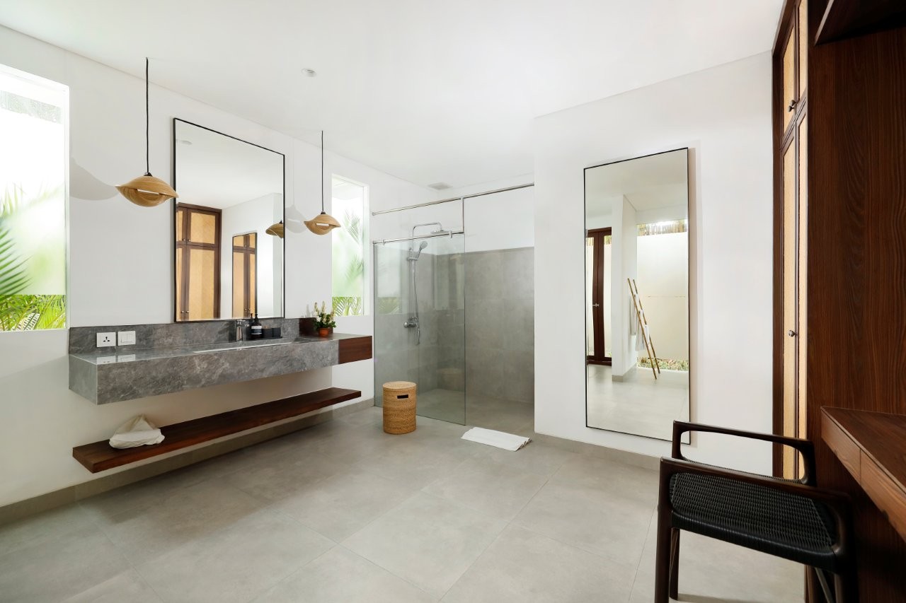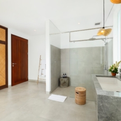 Designed as a true home away from home, OMEKALI is ideal for families and groups of friends looking to immerse themselves in Canggu’s relaxed café culture and vibrant lifestyle. The layout includes two bedrooms on the ground floor and two on the upper level, each offering generous space, en-suite bathrooms, and private balconies with views over the villa—delivering both comfort and a sense of privacy for every guest.