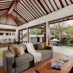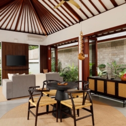 Set in the heart of Padang Linjong, Canggu, OMEKALI invites you into a refined world of tropical modern living. This beautifully reimagined four-bedroom villa blends clean minimalist lines with practical elegance, enhanced by warm wood finishes and calming stone textures. Following thoughtful renovations, the villa now features expansive open-plan interiors filled with natural light, creating a bright and welcoming tropical sanctuary.