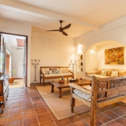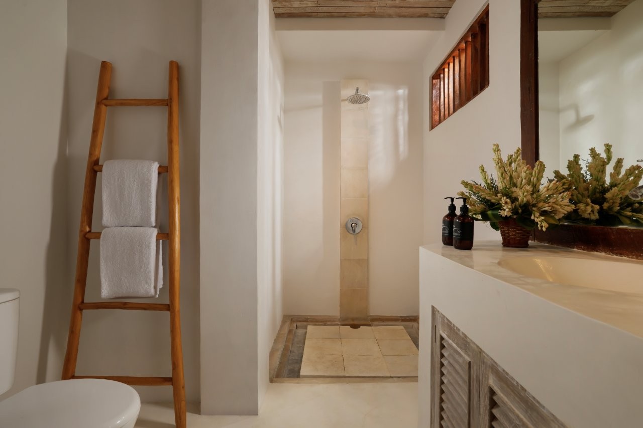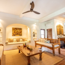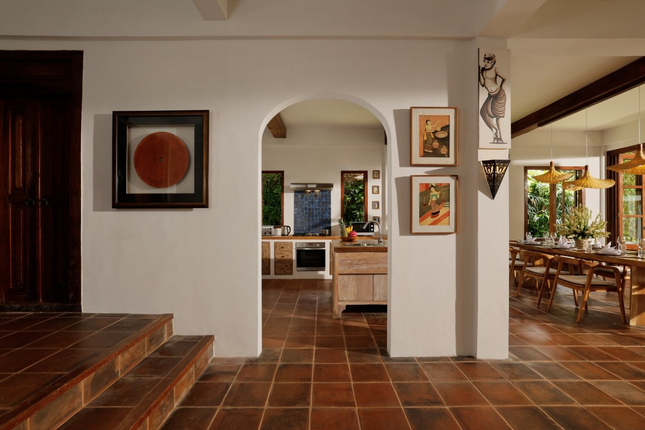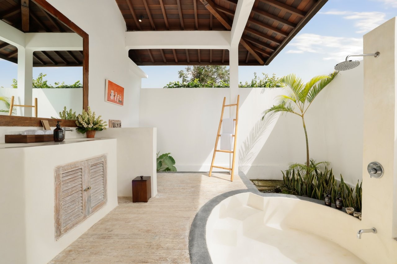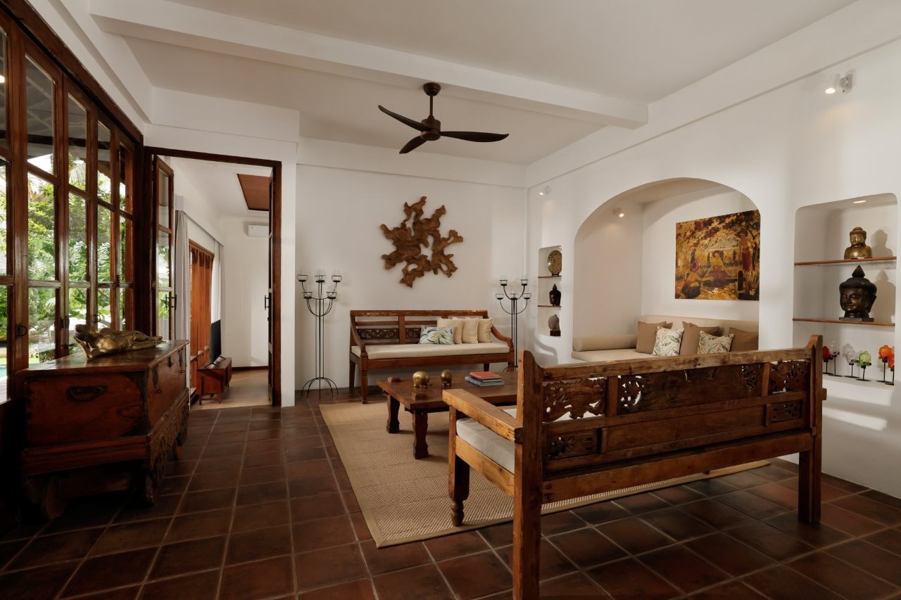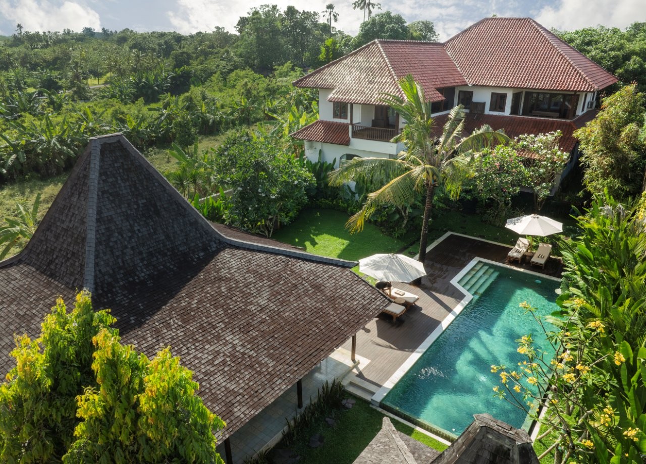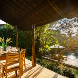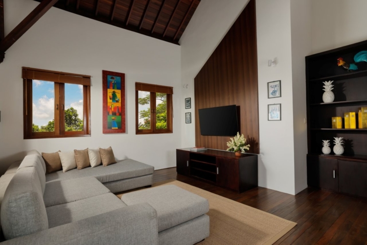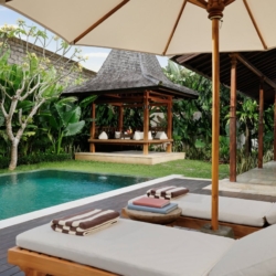 Outside, a terrace living space overlooks the garden, ideal for morning coffee or leisurely breakfasts. The private swimming pool is surrounded by lush landscaping and open space, offering a tranquil setting for both play and relaxation. At the center, a breezy gazebo encourages unhurried afternoons—made even more effortless by Nakula’s warm, attentive hospitality that ensures every stay is restorative and seamless.