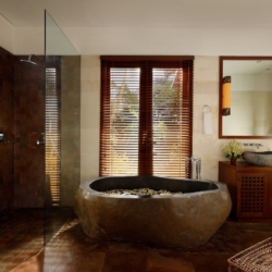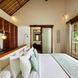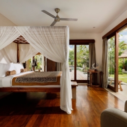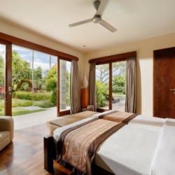 Each bedroom is a tranquil sanctuary dressed in crisp white tones, warm natural materials, plush linens, and generous storage. With five king bedrooms and one twin room, the villa comfortably welcomes families, groups of friends, or larger gatherings. Mornings begin with garden views and soft light filtering through the curtains, while nights retreat into quiet comfort and restorative sleep.