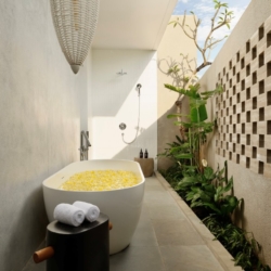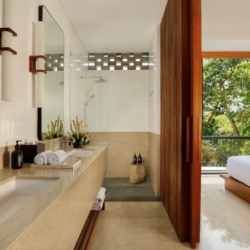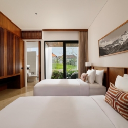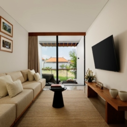 Each bedroom features its own en-suite bathroom, air conditioning, and refined details such as semi open-air showers and walk-in wardrobes, ensuring a comfortable and elevated stay. Perfectly positioned just minutes from Pererenan Beach, Atlas Beach Club, and La Brisa Bali, the villa provides easy access to Canggu’s beaches, cafés, and dining scene.