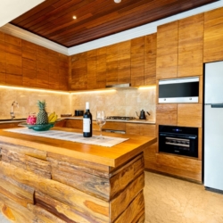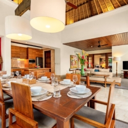The open-plan interior brings together the living room, dining area, and fully equipped kitchen into a single, inviting space designed for connection. From unhurried breakfasts and shared cooking moments to quiet afternoons in the air-conditioned lounge, the layout encourages togetherness without sacrificing comfort.